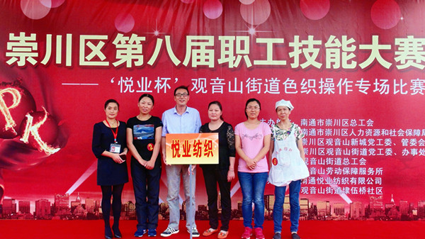 September 25, 2015 Chongchuan District eighth employee Skills Competition ——"Yueyi Cup" Yarn-dyed operation Competition of Guanyin Mountain Street was held in our company